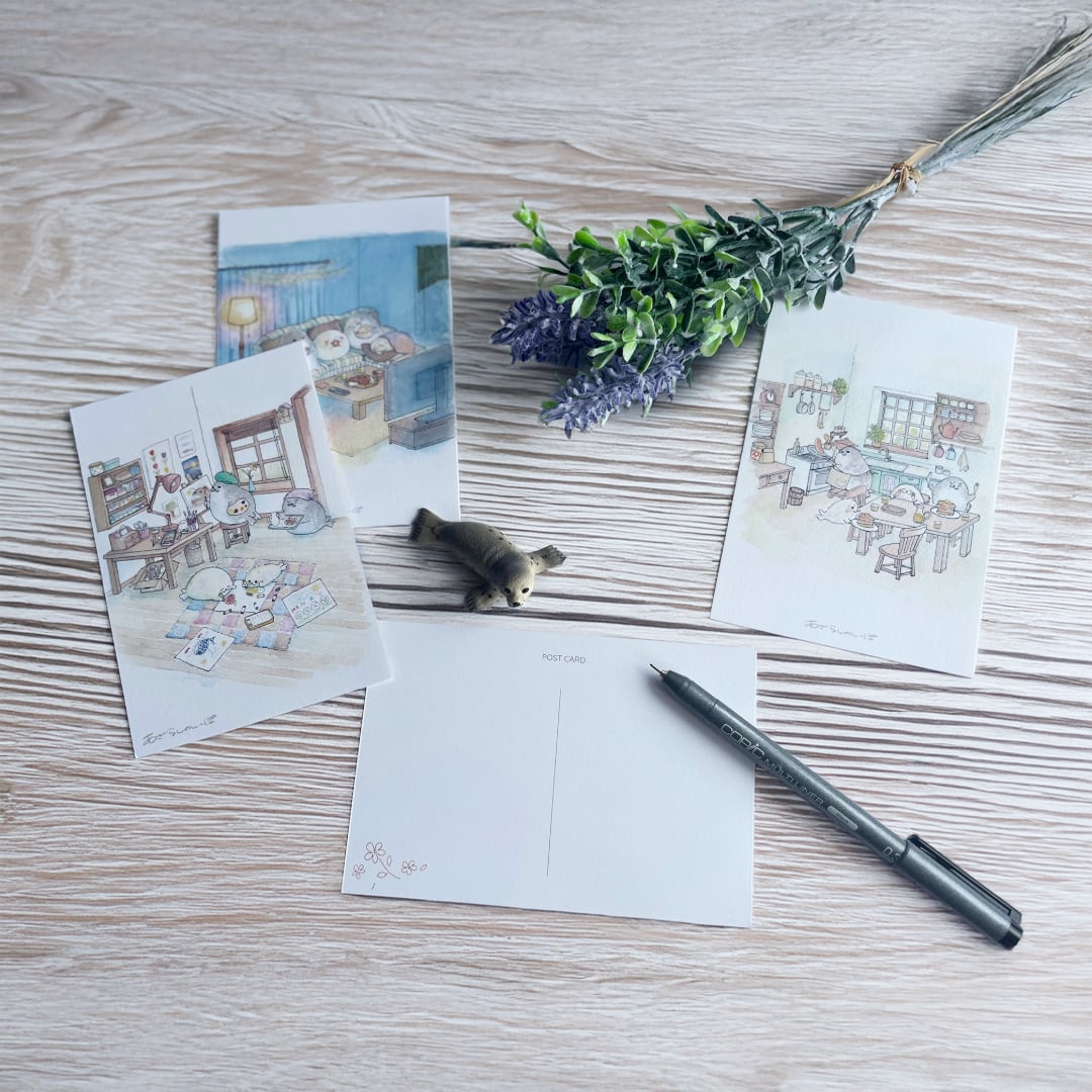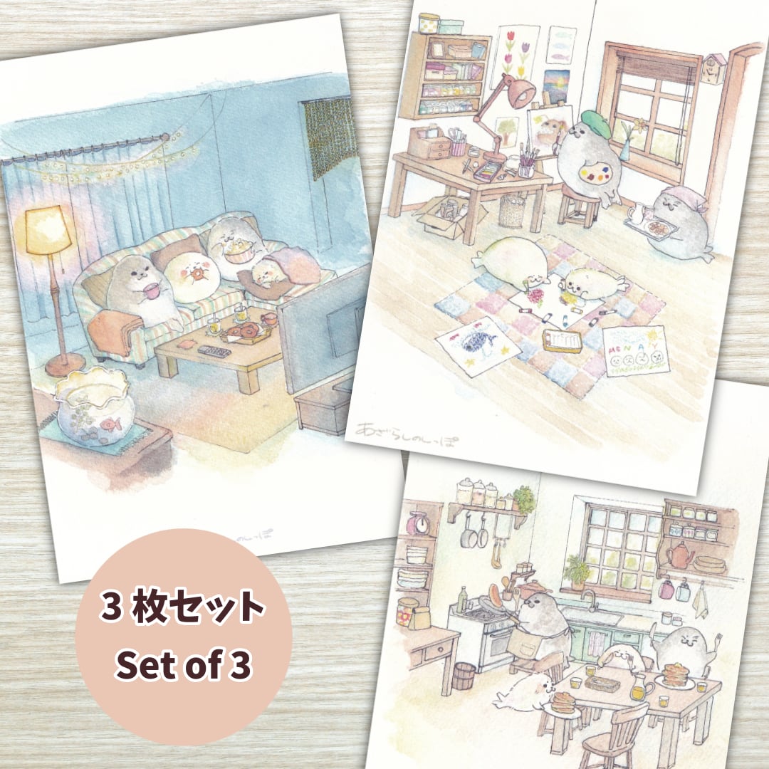 アザラシたちのやさしい時間を描いた3枚セットです。