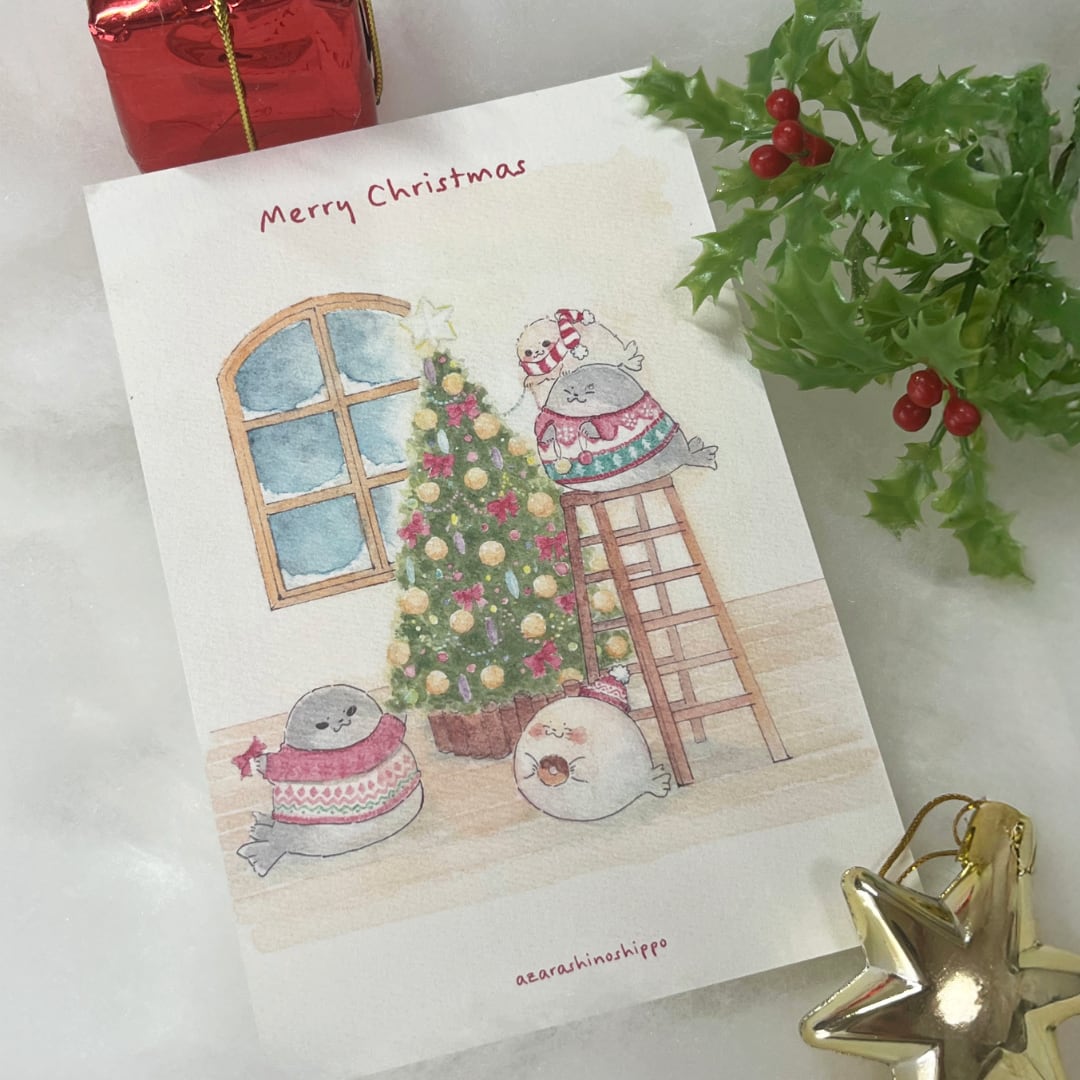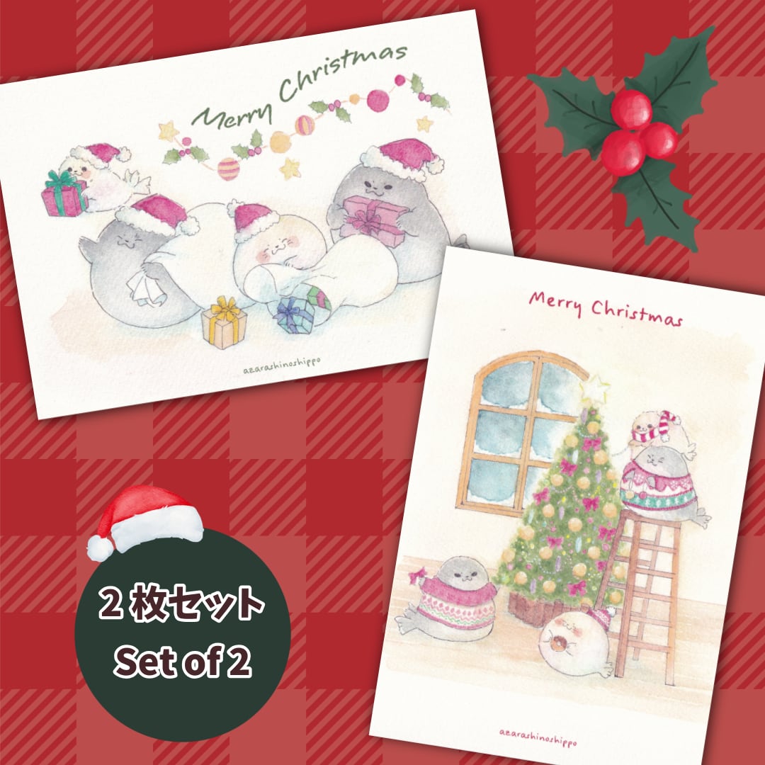【アザラシたちのクリスマスポストカード 2枚セット】