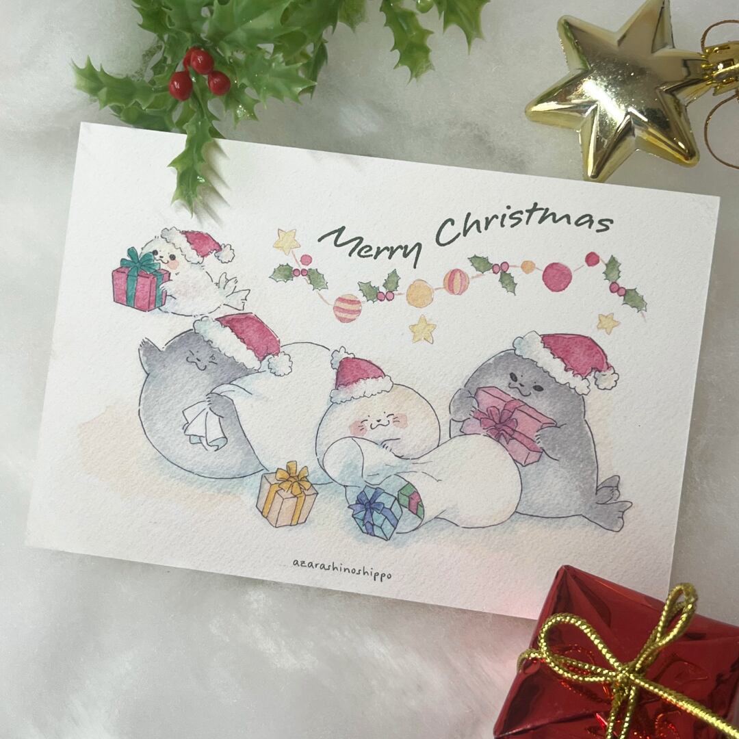 The seal Santas with fluffy hats are here to deliver warm smiles and colorful gifts.